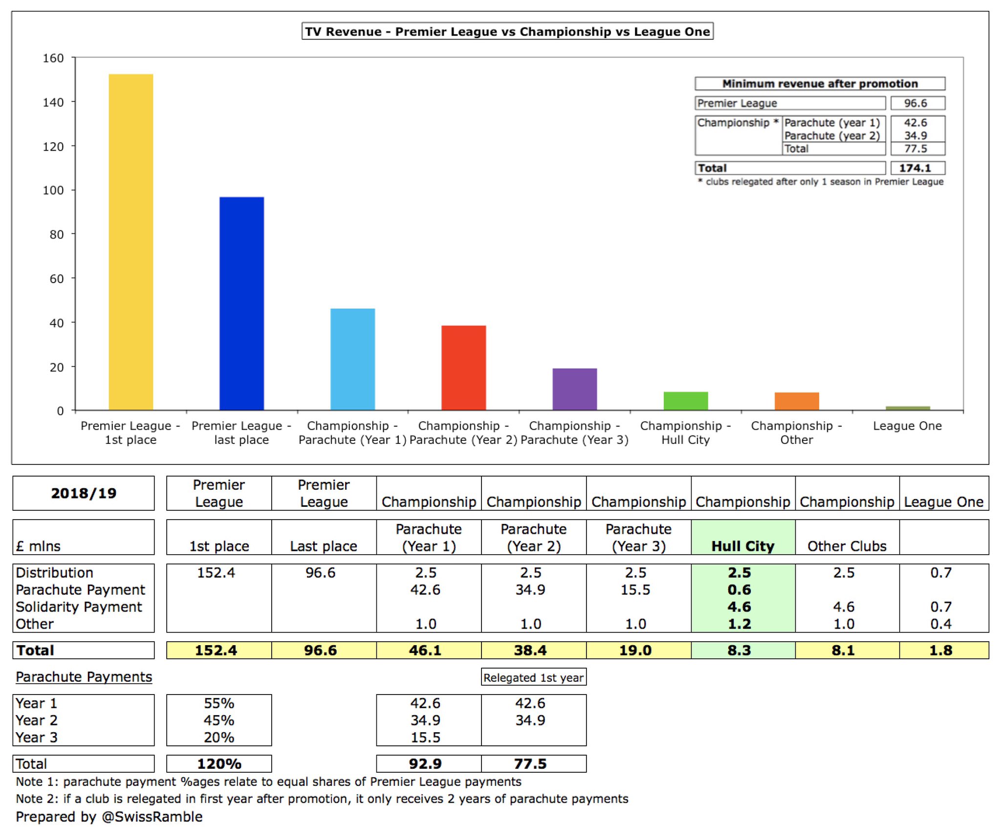 In the Championship Wednesday receive around £8m in broadcast income (before the Covid-19 rebate to broadcasters). That falls all the way down to around £2m in League One.